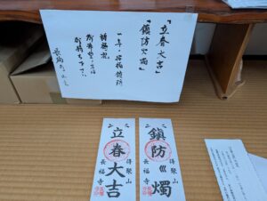 『立春大吉』『鎮防火燭』のご祈祷札にて